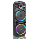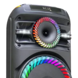 Parlante inalámbrico. Potencia: 120 watts RMS. Conexión inalámbrica por bluetooth. Puerto USB. Luces audio rítmica. Radio FM. Display LCD. Equalizador. Función TWS. Control remoto. Micrófono inalámbrico incluído. Dimensiones: 111cm alto x 41cm ancho x 44cm profundidad.