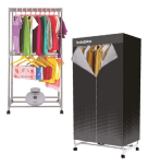 Secado por aire caliente. Portátil. Bajo consumo. Perchero de dos niveles. Estructura acero inoxidable. Material apto para altas temperaturas. Calentamiento PTC, aire uniforme. Temporizador 0 a 180°. Proteccion Anti-calentamiento. Medidas: 150x45x70. Potencia: 1050W